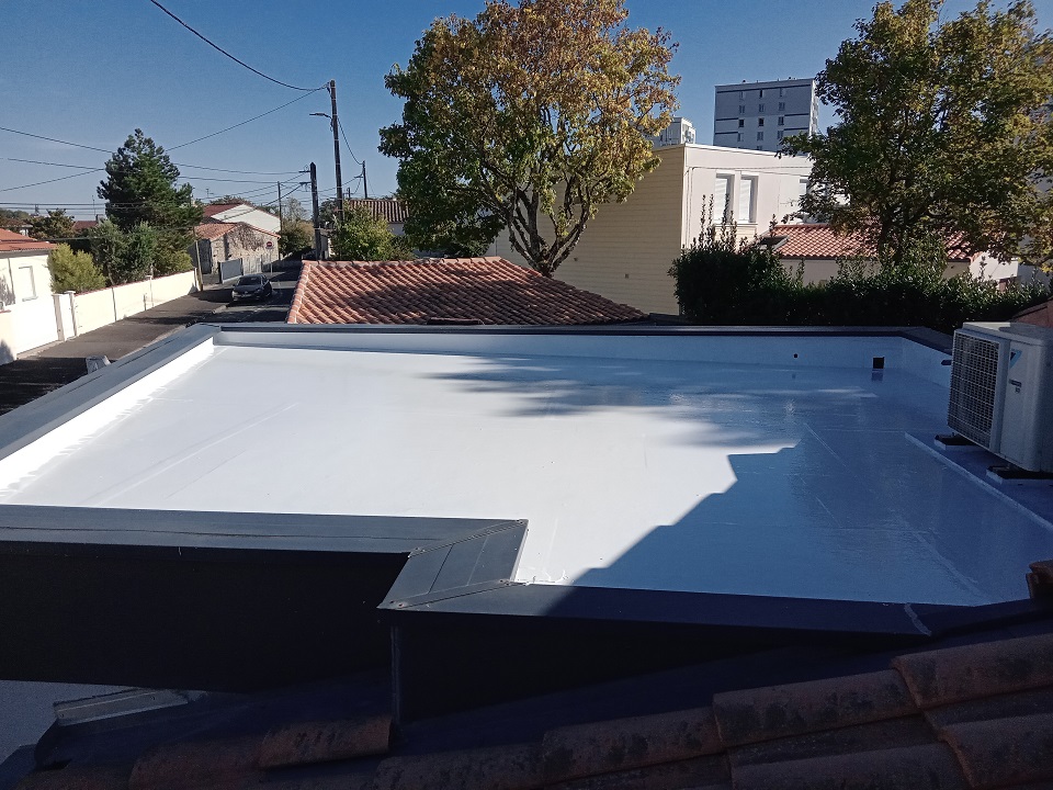 Le PVC est la solution idéale pour des projets de rénovation ou d’agrandissement. Offrant une longévité de 30 ans, il est spécialement conçu pour s’adapter à tous les types de supports, qu’il s’agisse de bois, béton ou bac acier. Avec des options de couleurs personnalisables (gris clair, anthracite ou blanc), vous pouvez harmoniser votre toiture ou terrasse avec l’esthétique de votre bâtiment tout en respectant vos attentes en matière de design. Grâce à sa pose flexible, le PVC offre une parfaite étanchéité et s’intègre facilement à vos projets de rénovation, tout en respectant les exigences des normes RE 2020.